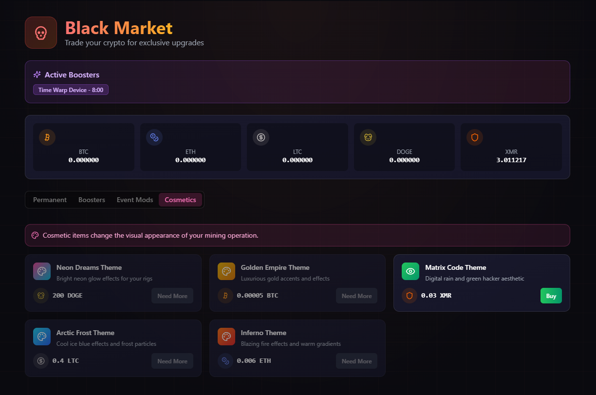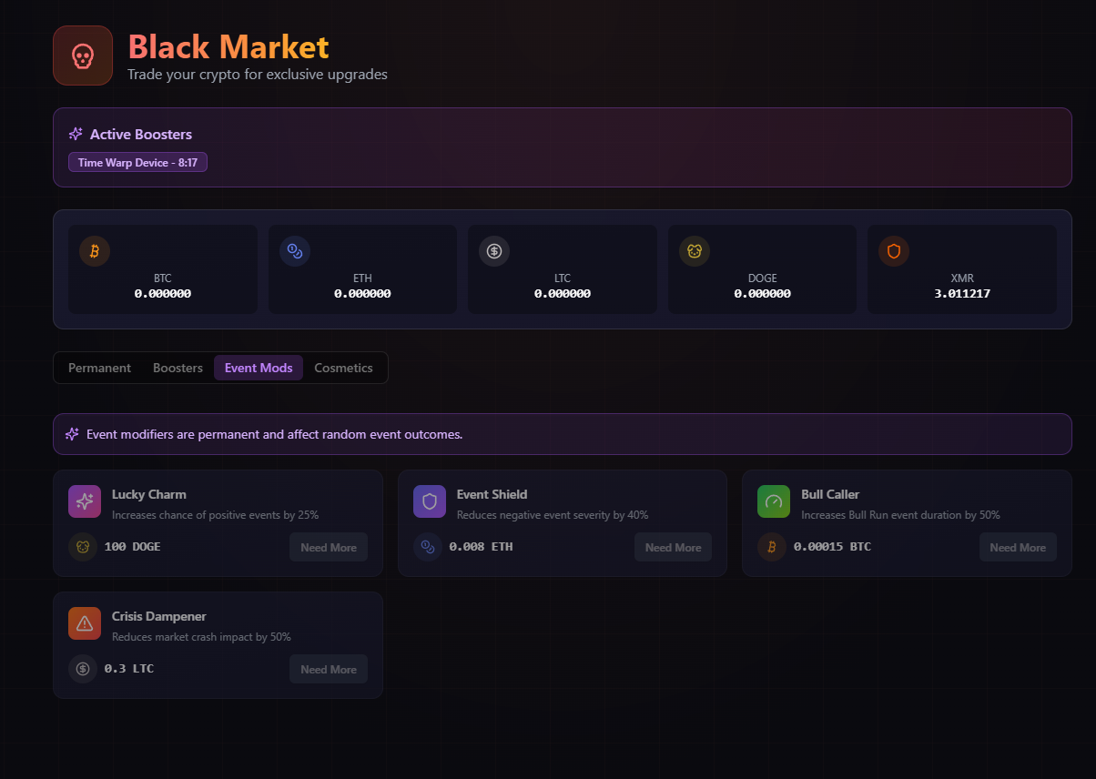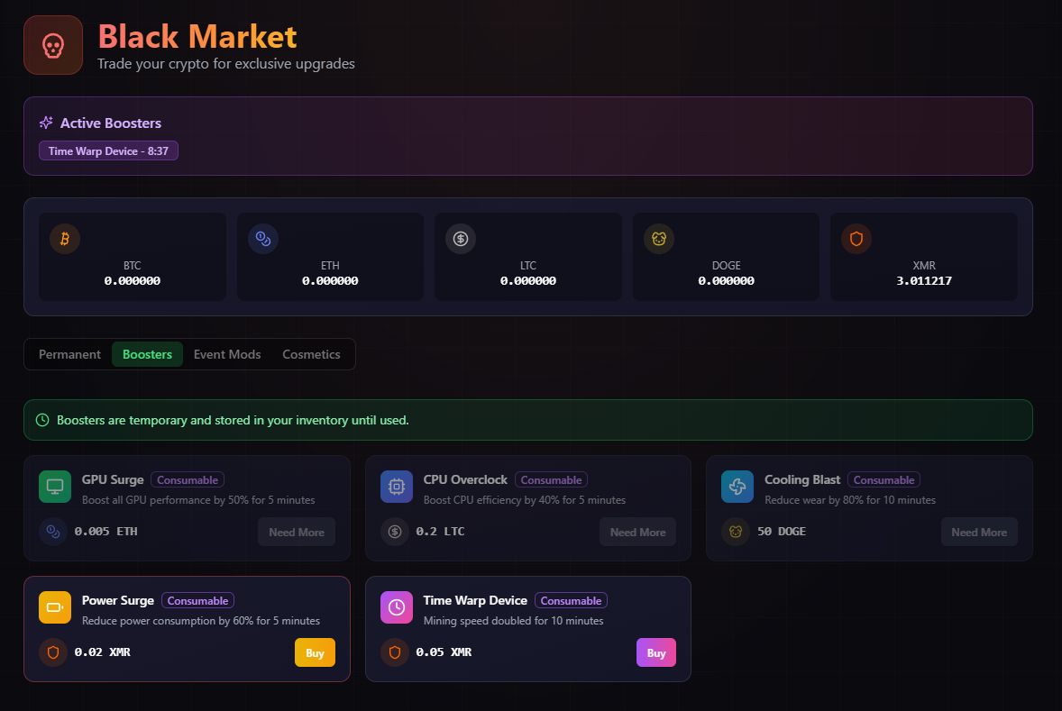 Their is now a Permanent,Boosters,Event Mods and Cosmetics tab within the blackmarket too chose from all doing slightly diffrent things!